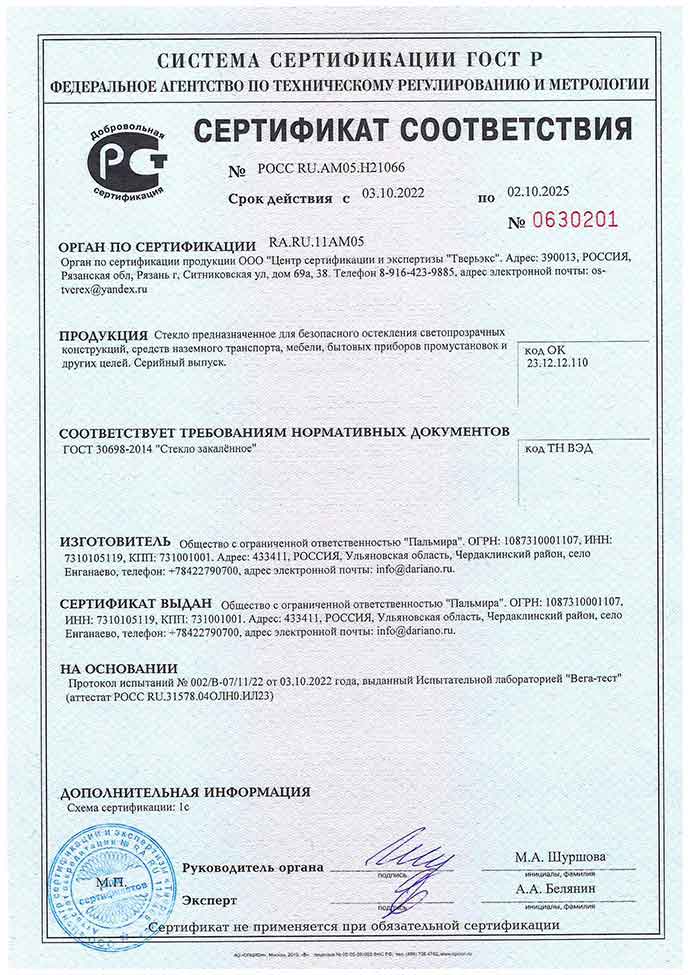 Сертификаты соответствия Дариано