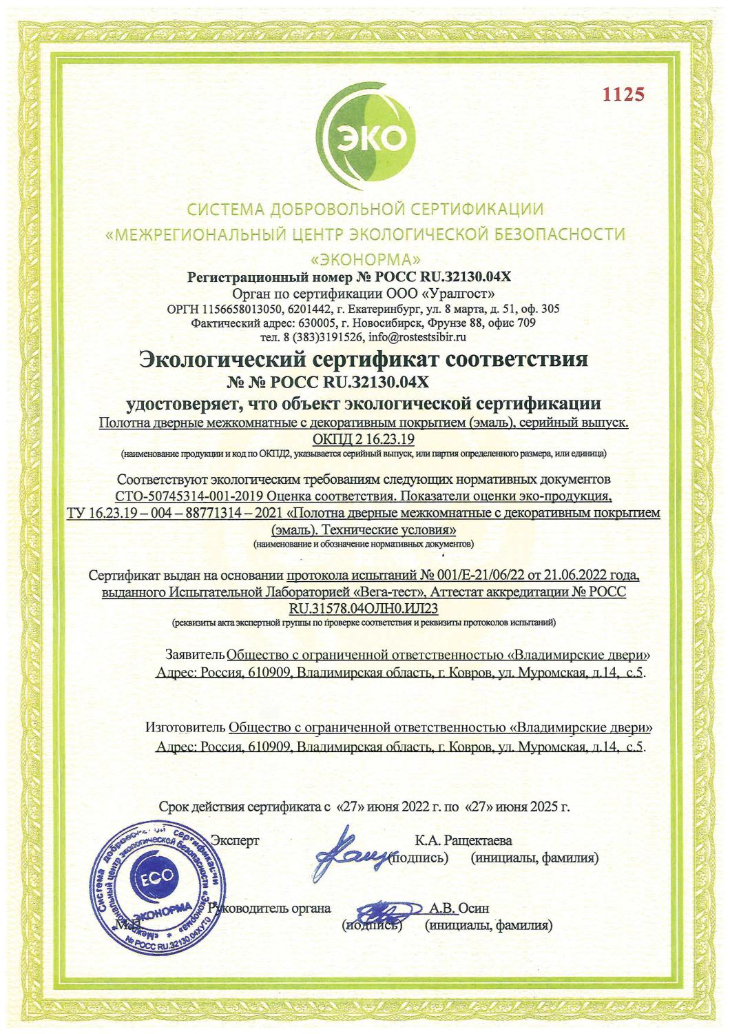 Экологический сертификат соответствия ВФД №32130.04Х