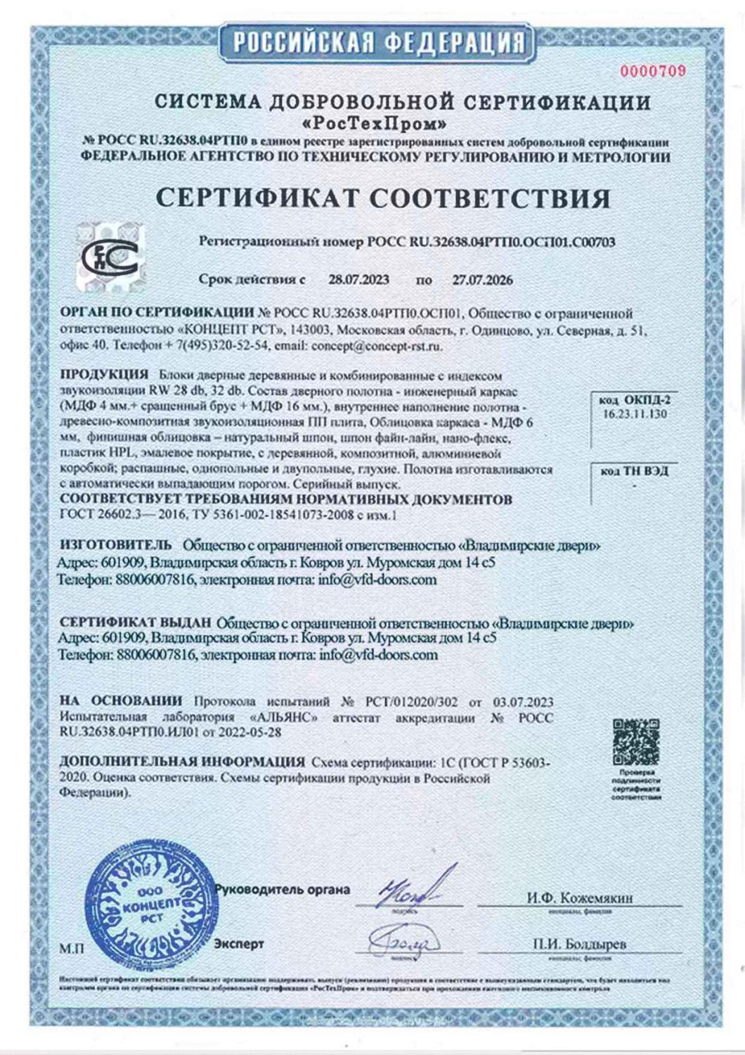 Сертификат соответствия ВФД №0000709