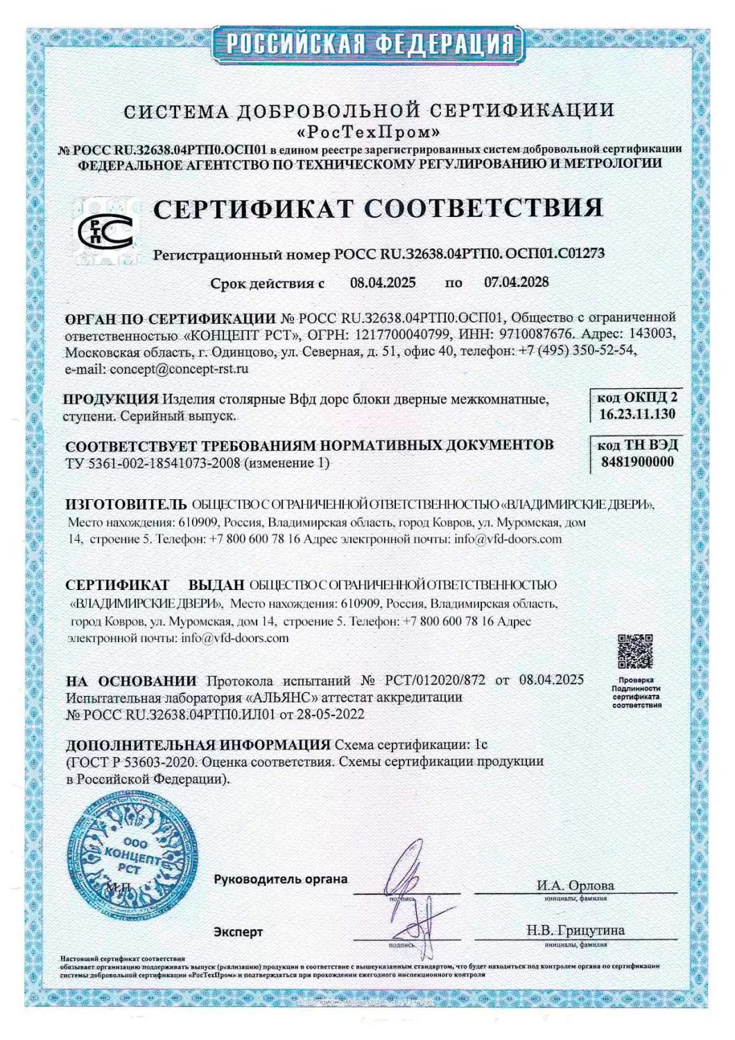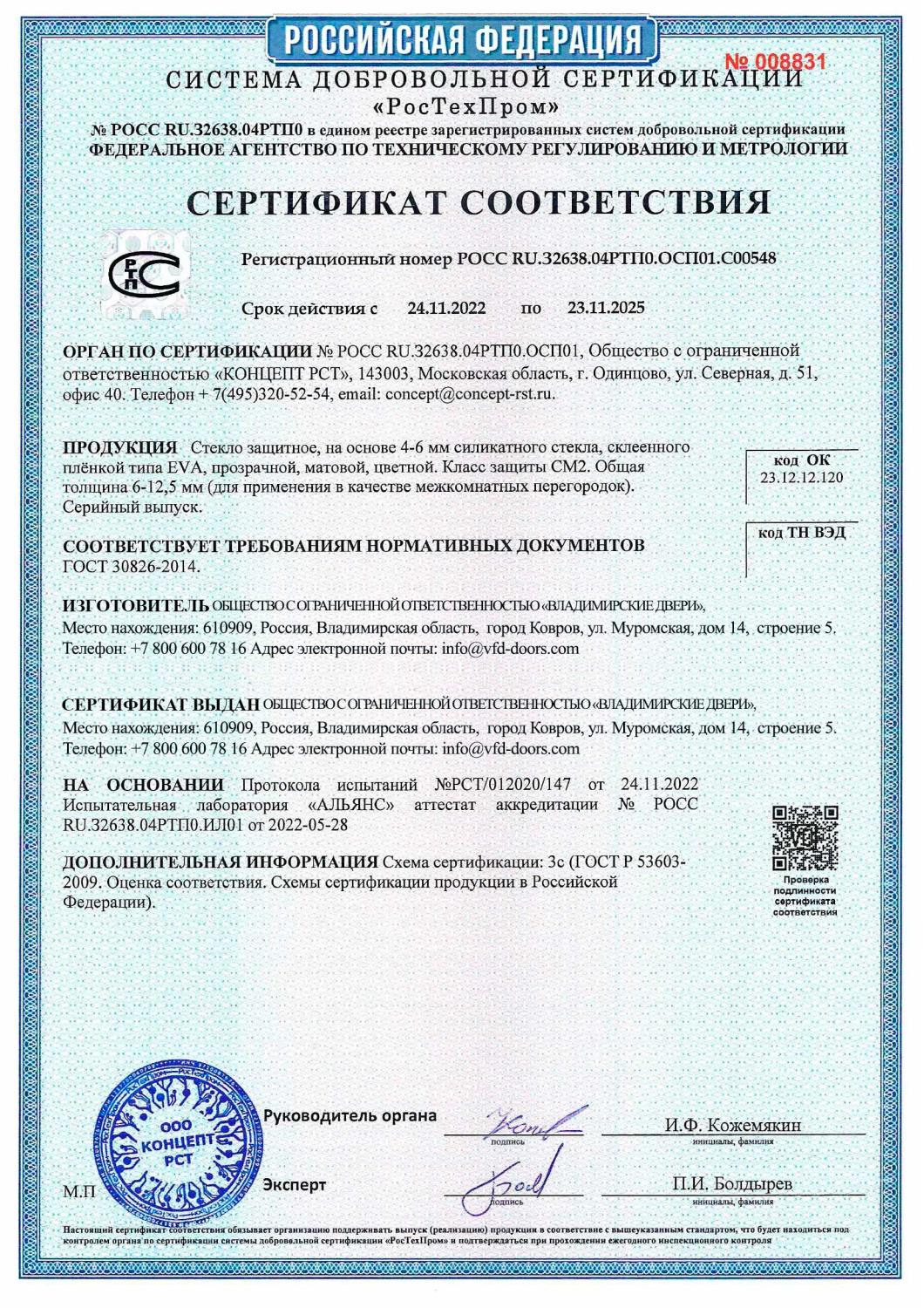 Сертификат соответствия ВФД №008831