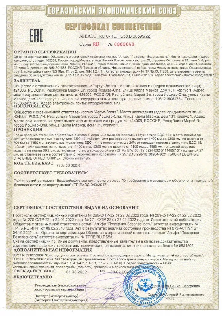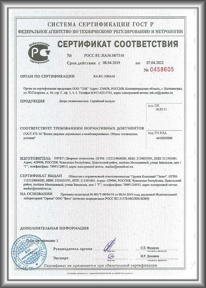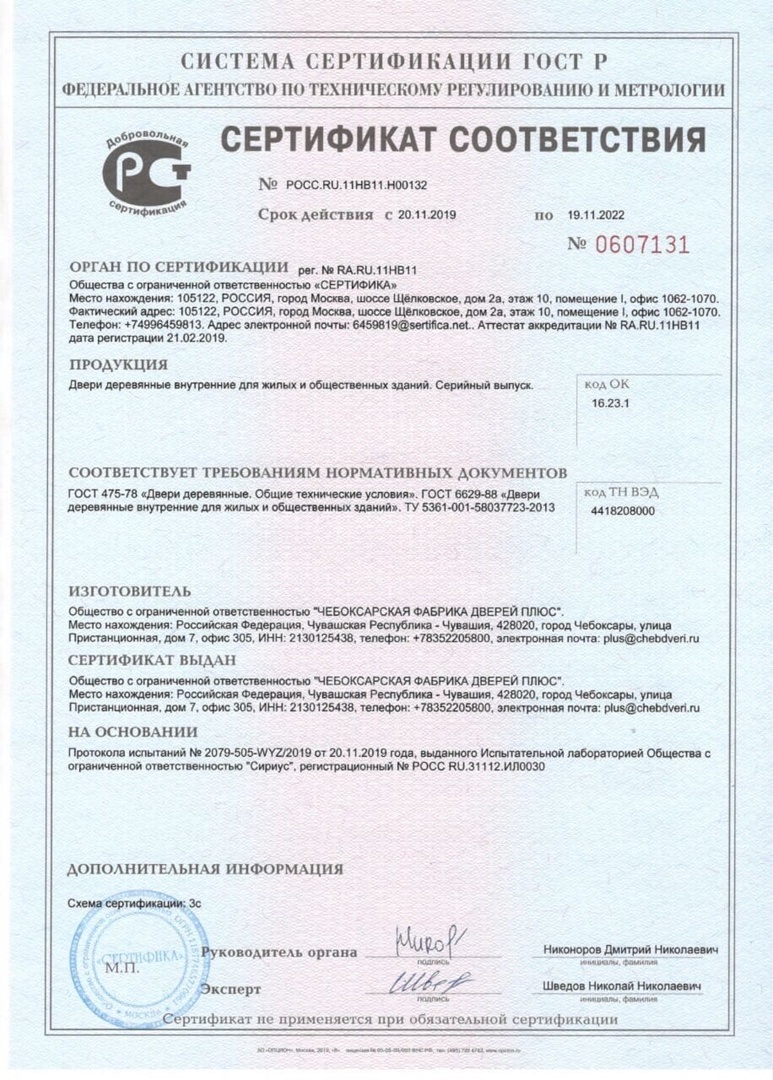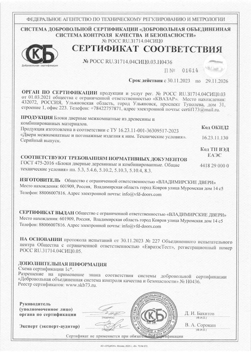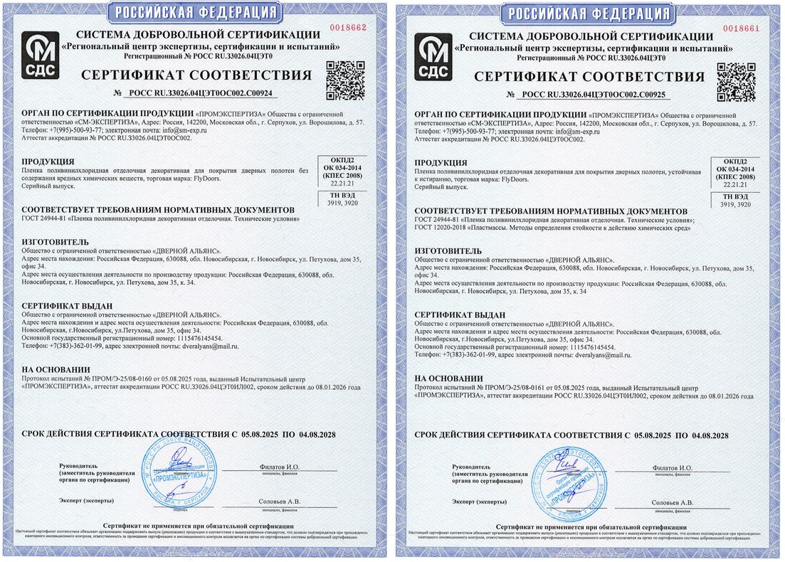 Сертификат соответствия Flydoors
