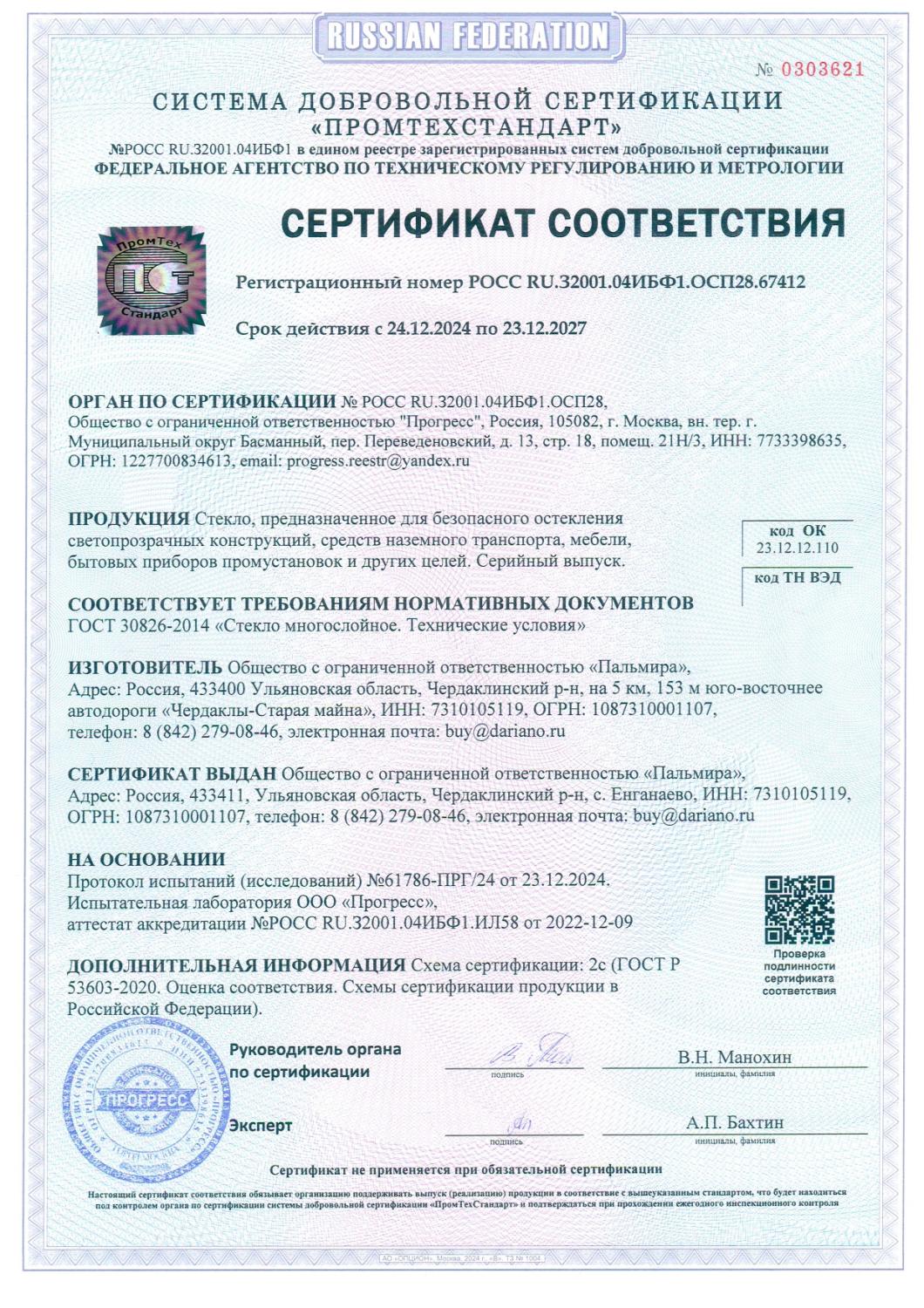 Сертификат соответствия №0303621