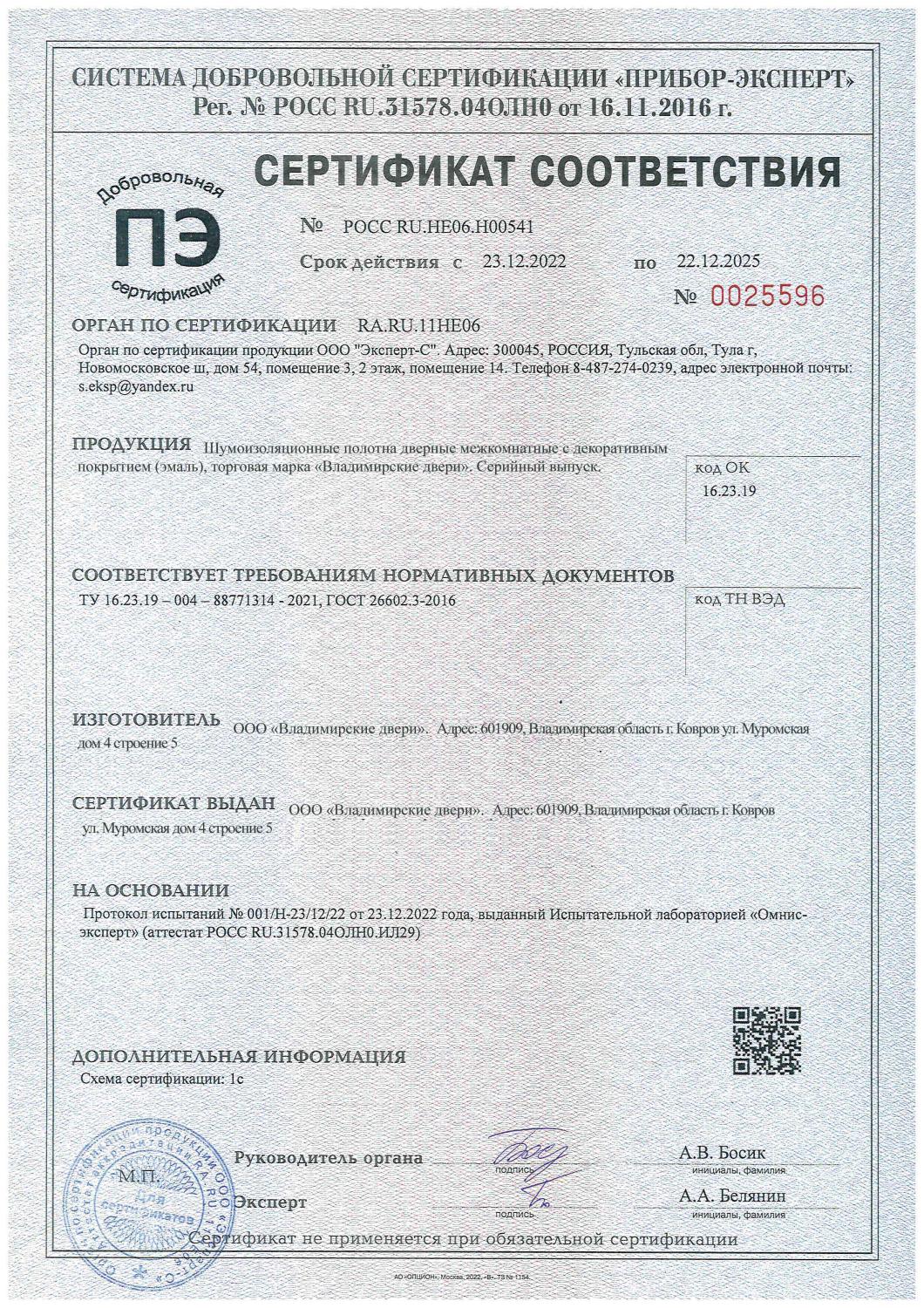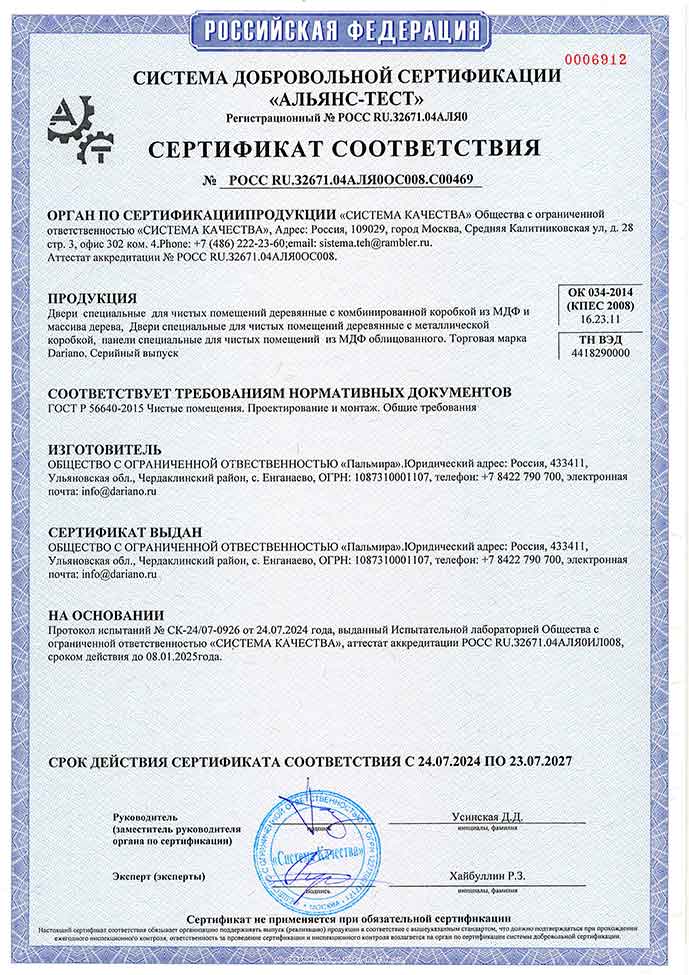 Сертификат соответствия №0006912