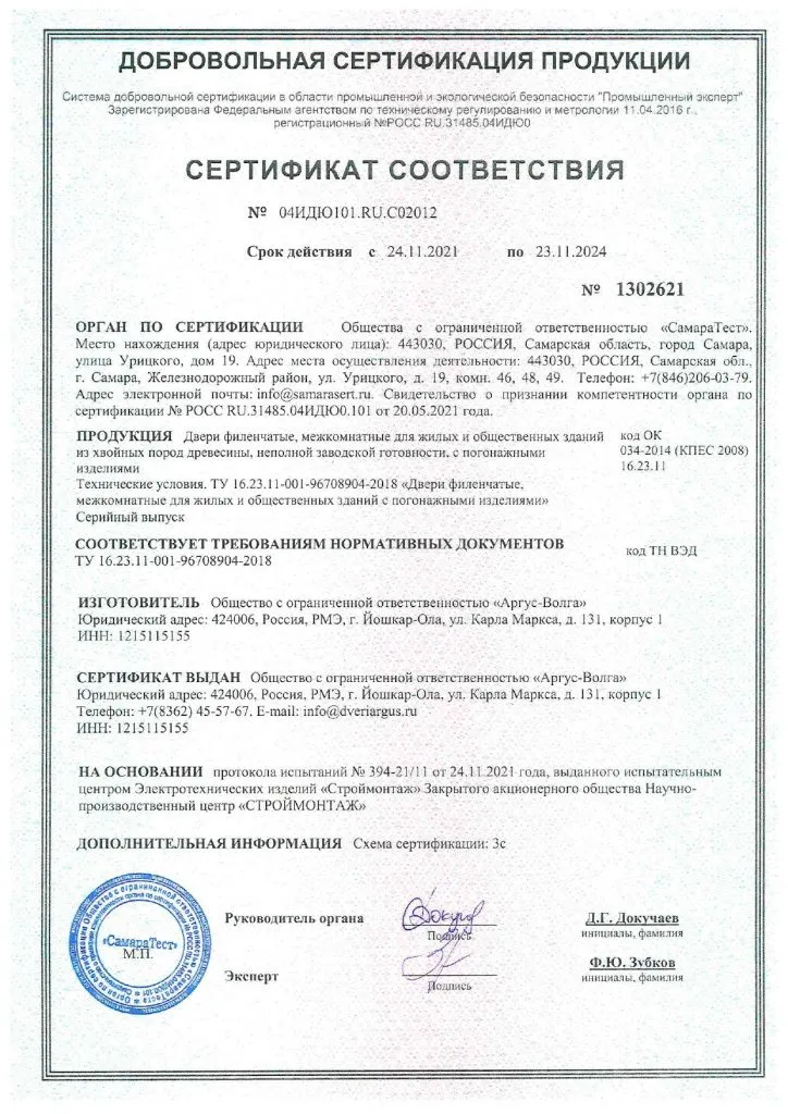 Сертификат соответствия Аргус №1302621
