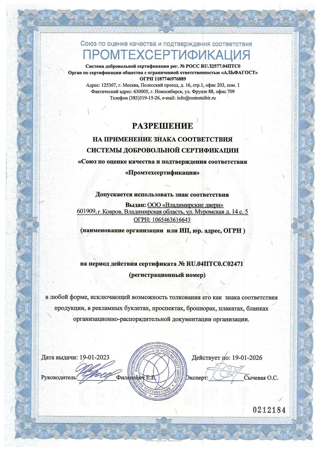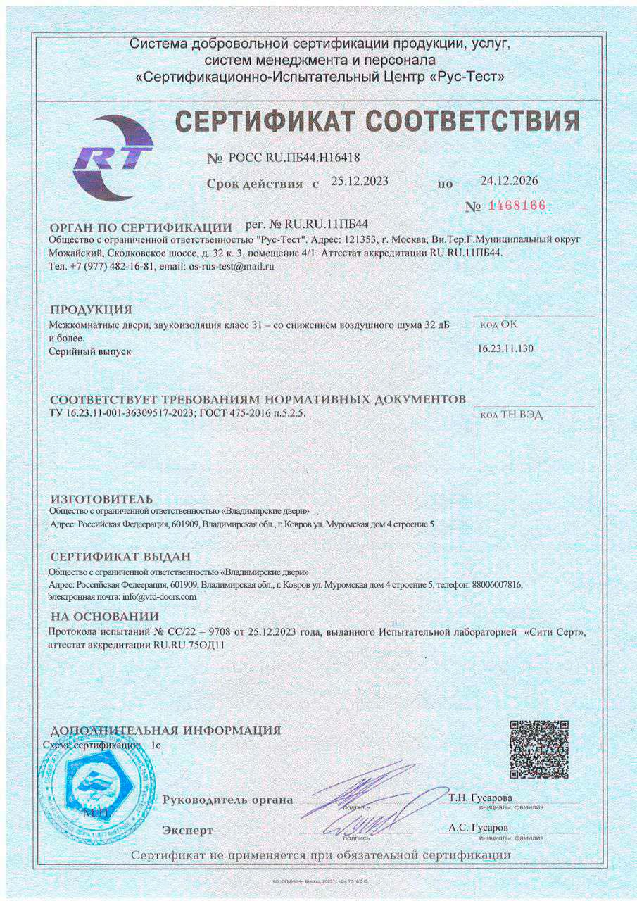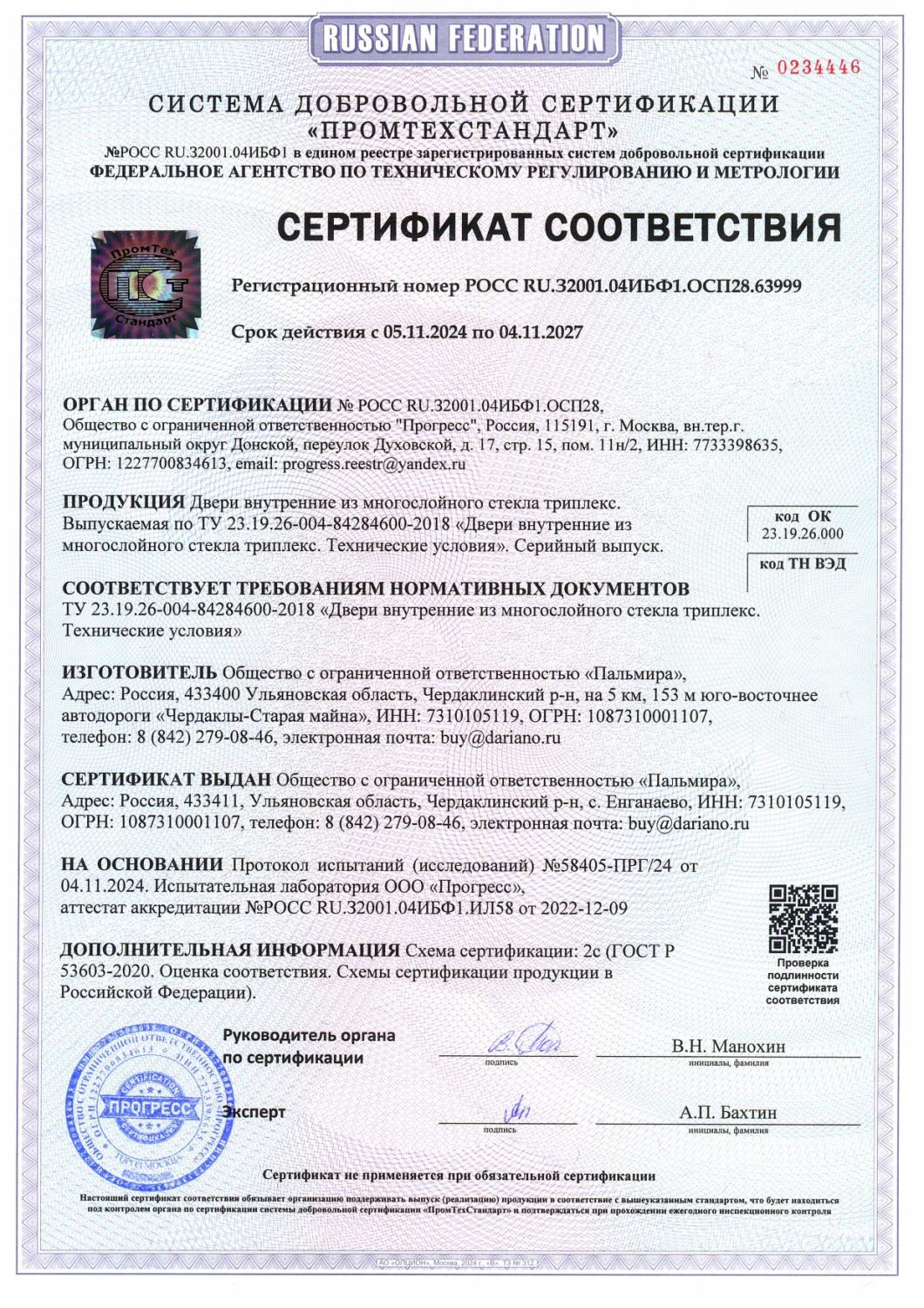 Сертификат соответствия №0234446