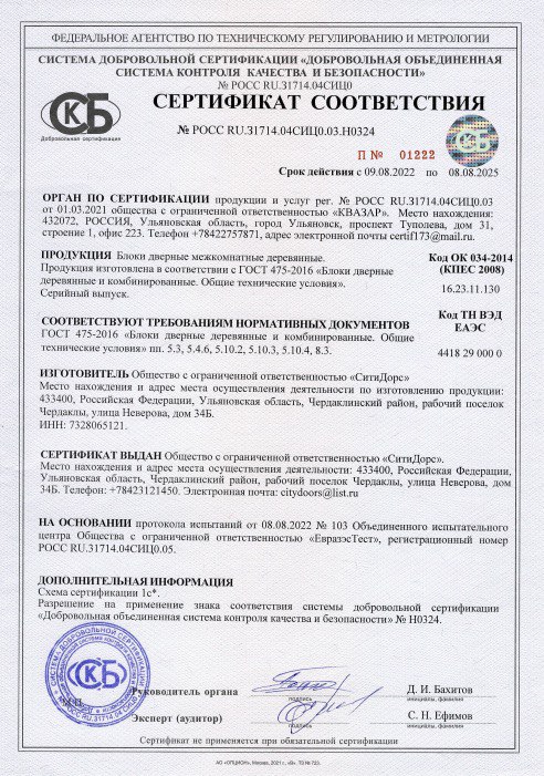 Сертификат соответствия СитиДорс