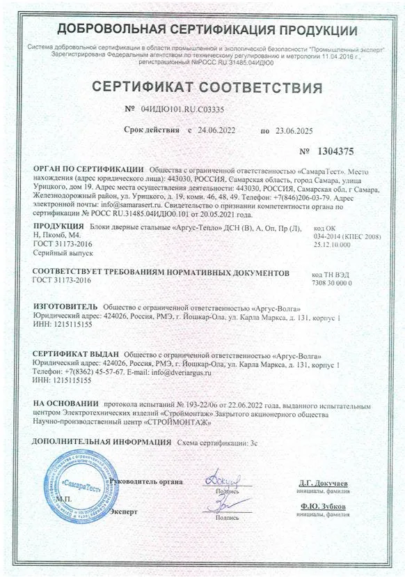 Сертификат соответствия Аргус №304375