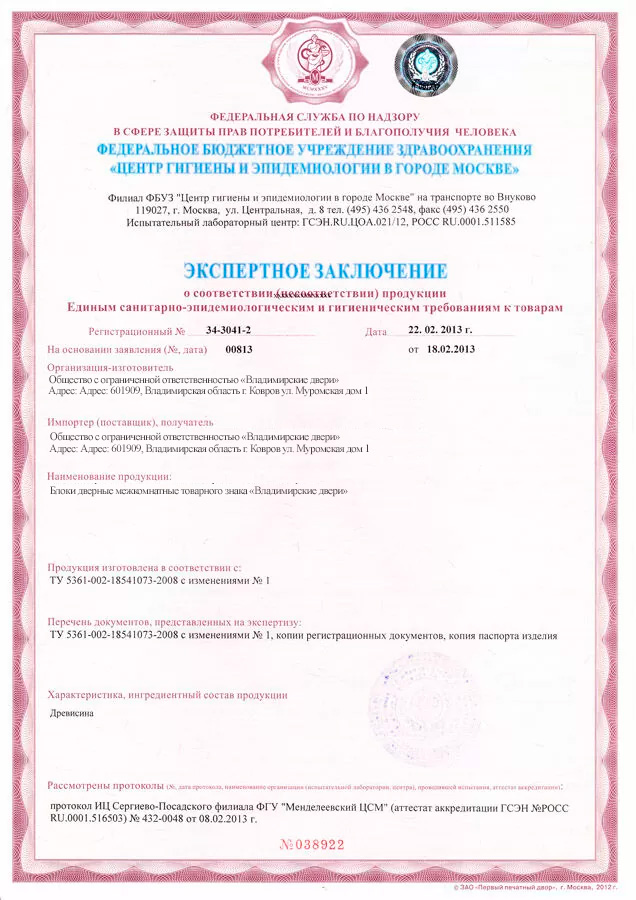 Сертификат соответствия ВФД №038922