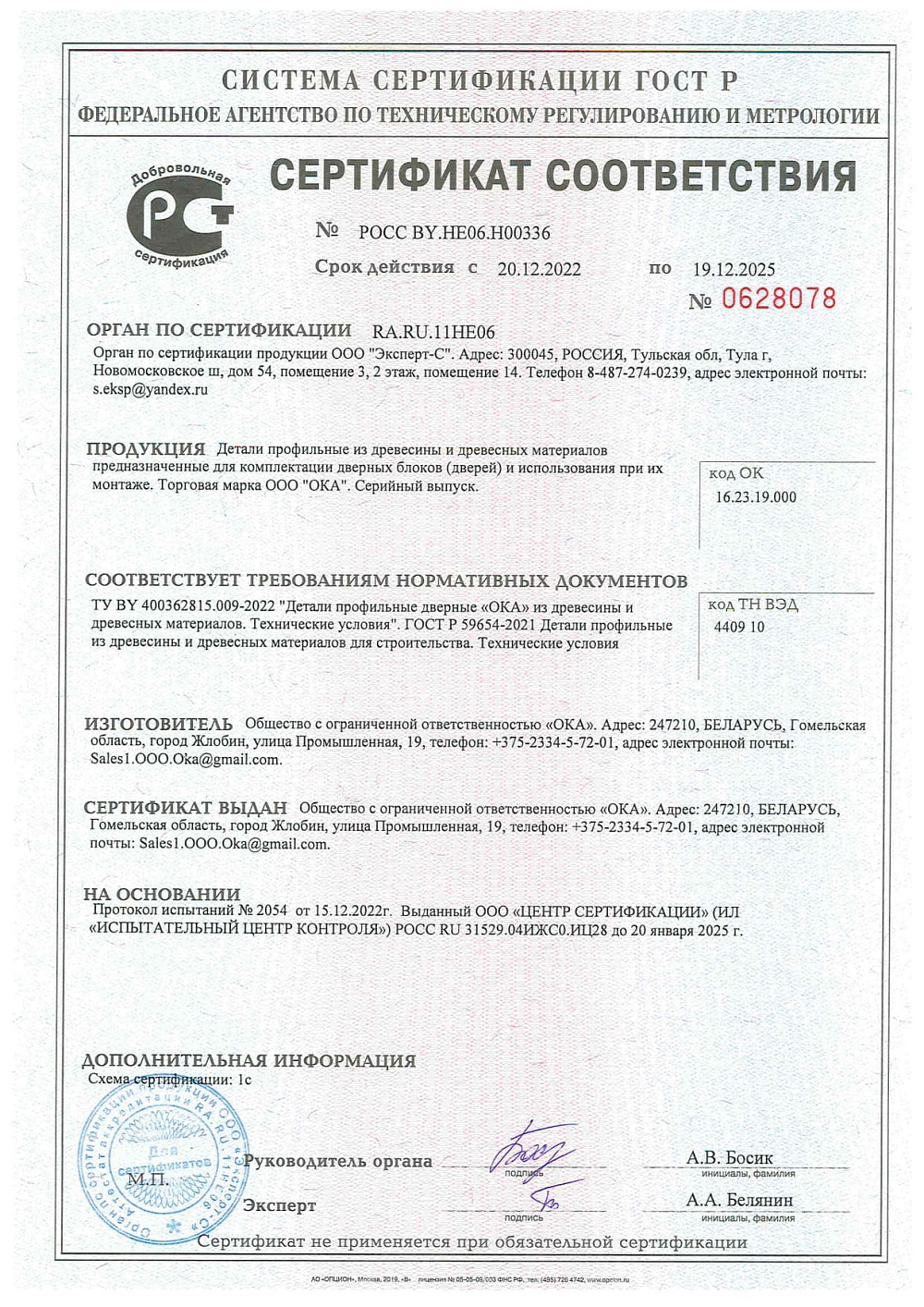 Сертификат соответствия №0628078