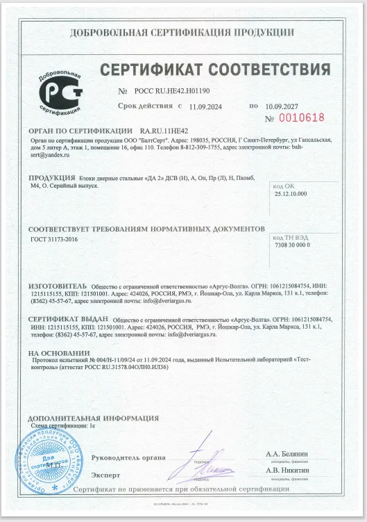 Сертификат соответствия Аргус №0010618