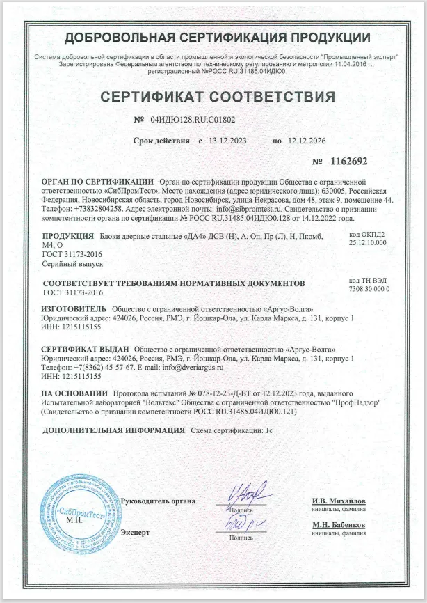 Сертификат соответствия Аргус №1162692
