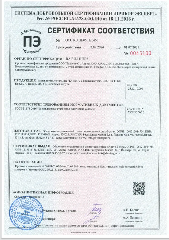 Сертификат соответствия Аргус №0045100