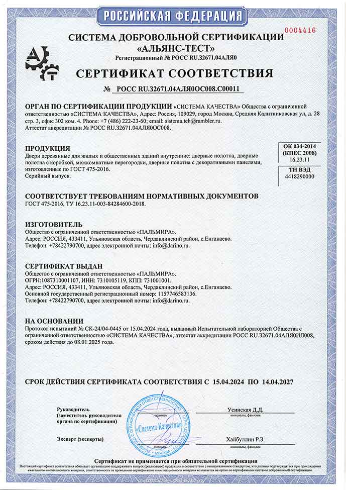 Сертификат соответствия №0004416