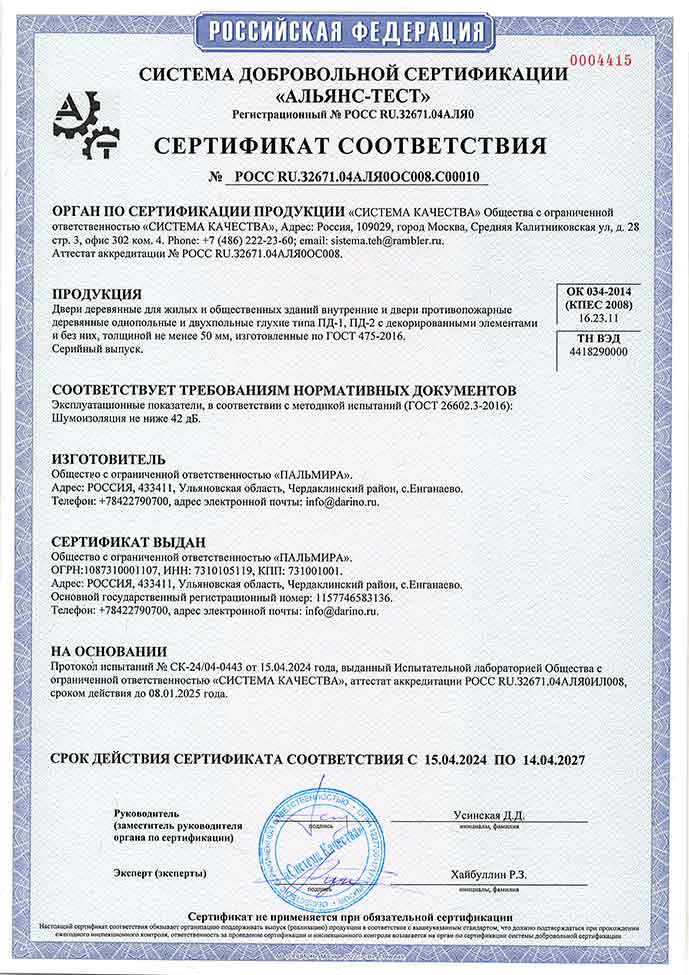 Сертификат соответствия №0004415
